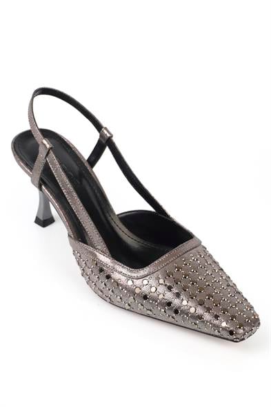 Capone Sandi Open Back Blunt Toe Crystal Embellished Mid Heeled Women Silver Shoes