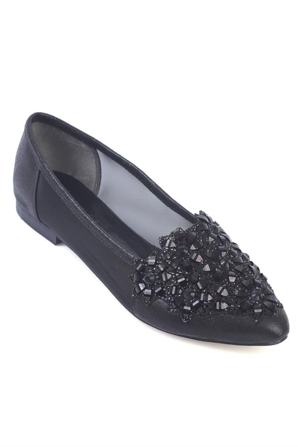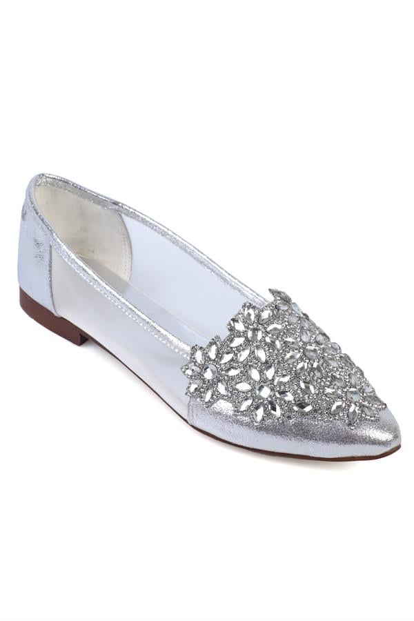 Capone Aida Pointed Toe Mesh Crystal Embellished Women Pearl Ballerina