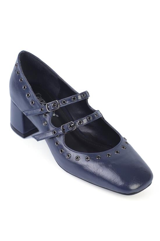 Capone Mid-Heeled Studded Women Brown Mary Jane Shoes