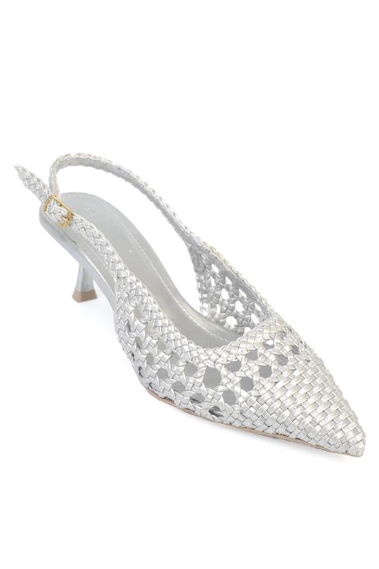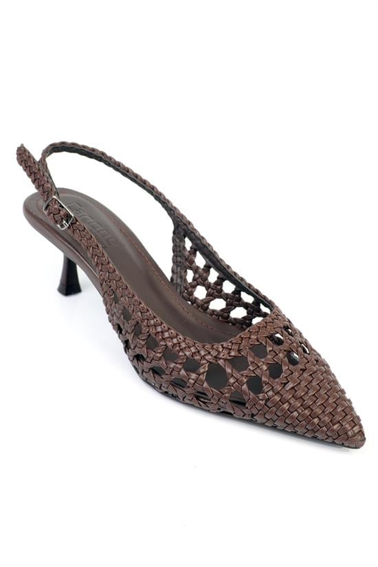 Capone Laurie Woven Pointed Toe Open Back Mid Heel Women Black Shoe